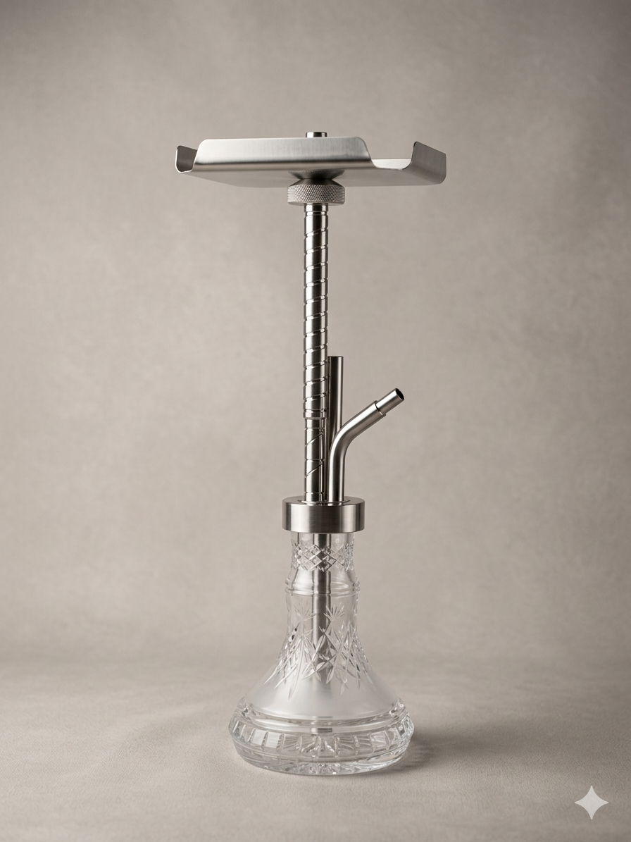 The House of Shisha has a modular down stem & upper stem, so you can now use a mini base to turn your tabletop shisha or use it for travel. It also has a quick-release tray, which is connected by a perfect ground joint. This means no threads, screwing, or grommets are needed.